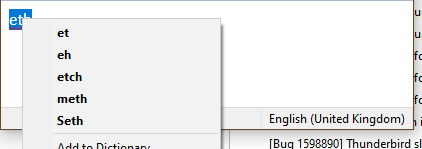 I'm using Windows OS and Thunderbird 68.4.2 English (British) version and I've installed a Dictionary - the British English Dictionary (Marco Pinto) 2.81.