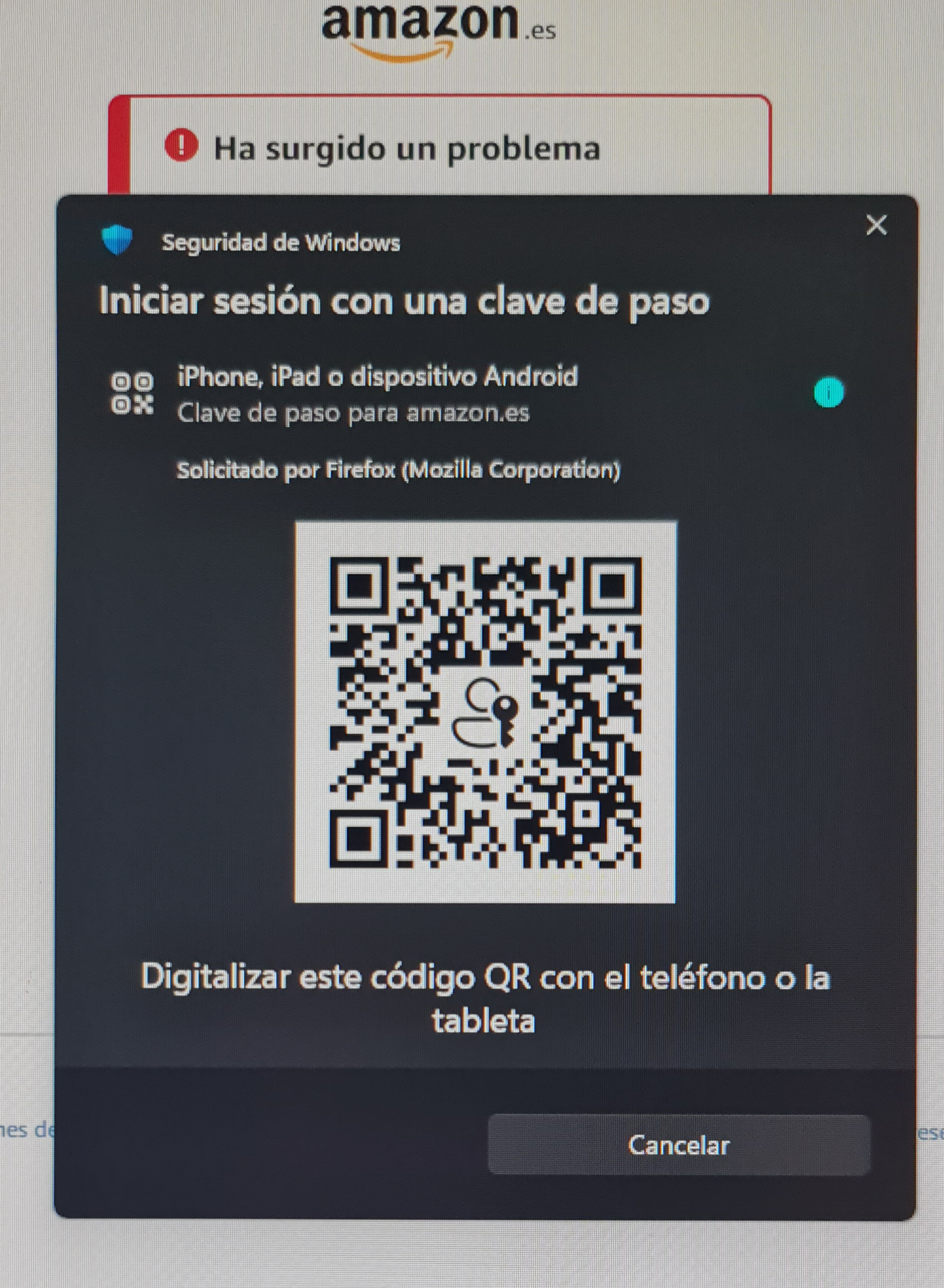 Desde hace unos días al entrar en mi cuenta de AMAZON, me pide una clave de paso a través de un QR que me dice lo solicita Firefox. Pues bien, escaneo el código con distintas aplicaciones pero no consigo que cargue nunca, así que no puedo entrar en mi cuenta y hacer un pedido que necesito. Me gustaría saber cómo tengo que configurar firefox para que no me solicite ese QR, que pueda ser a través de un código o una contraseña.