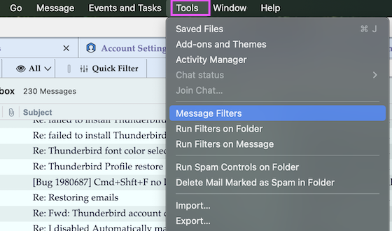 I am trying to create filters for all the spam I have been receiving. It mentioned a tools menu for adding additional filters, but I am not seeing a tools menu anywhere,