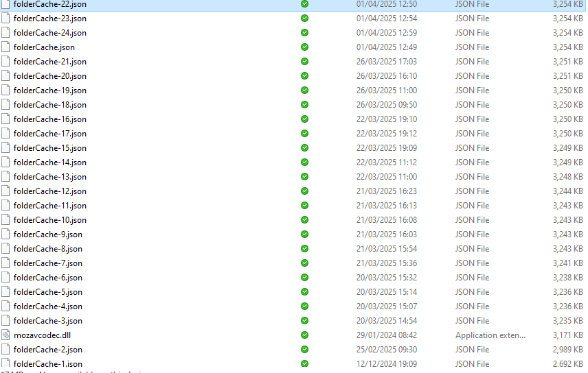 You might try deleting all of those foldercache files with thunderbird is not running and restarting, and then checking them again.