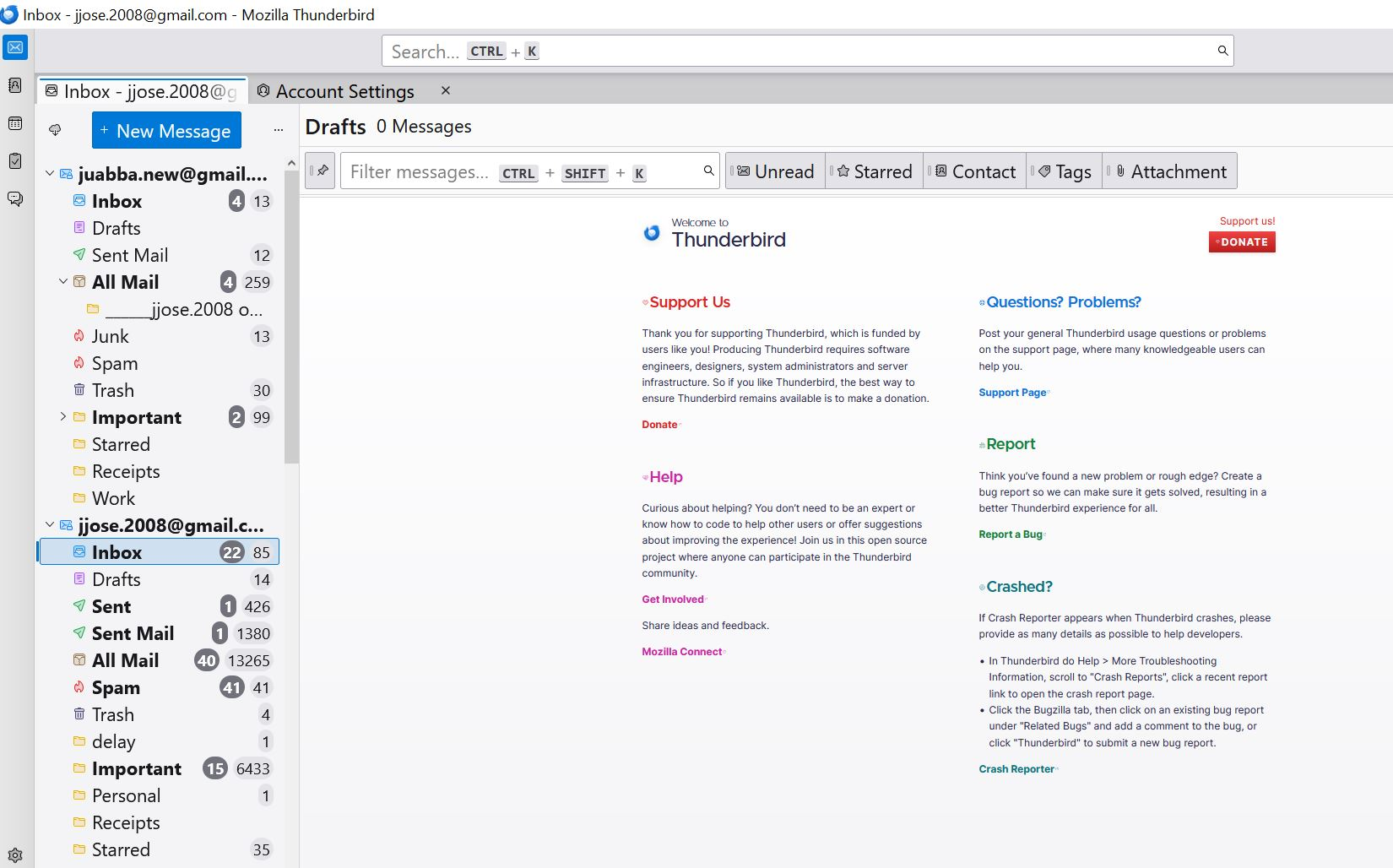 attachments picture one the bank register shows the tranfer of the donation to the thunderbird email picture two the mesage that used to appear on the inbox page a few days ago picture three the actual contente of the inbox page