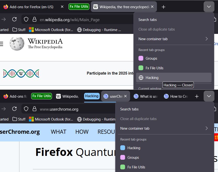 Every time I accidentally close Firefox I lose all my saved groups on reopening. I can see they are still there but cannot see how to open them. They are such a great innovation. Please make it easier to restore them from previous sessions. Going through a search history and restoring them one by one is hugely time consuming when they are already there and just inaccessible. btw, I tried using scrounger (via troubleshooting) but the "Save List" is greyed out.