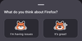 I dont know if it's an issue with a recent update but everytime I open Firefox I get a popup asking me "What do you think about Firefox?"