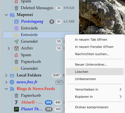 My folders 'Entwürfe' (Drafts) and 'Gesendet' (Sent) apear twice. How to delete the doubles?