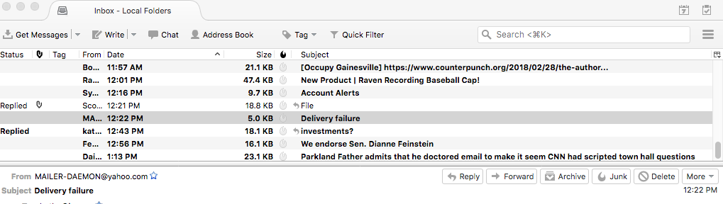 Having recently switched from Eudora OSE to Thunderbird, I have all my mail accumulating in the "Inbox" folder and so far cannot find any way to display a list of other folders, move messages to those other folders, or search _just_ those folders (though using the "Find..." command does display messages apparently imported from Eudora in appropriately-named folders).