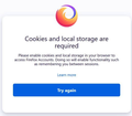 Stamattina all'avvio del browser sul mio PC Windows non riesco a fare il login del mio account Firefox. Appare la schermata che allego, ma le impostazioni non sono cambiate e i cookies non sono disabilitati. Il link "learn more" non fornisce nessuna informazione utile. Versione per tablet funziona regolarmente. La mia versione di Firefox è 96.0.3 Grazie per l'aiuto