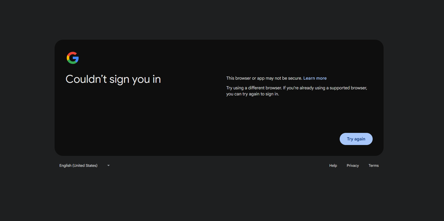 when i login my google account on firefox they say this browser is not try another browser. and if you already use supportive browser then try again and if click on try again and try it they still show me same statement.