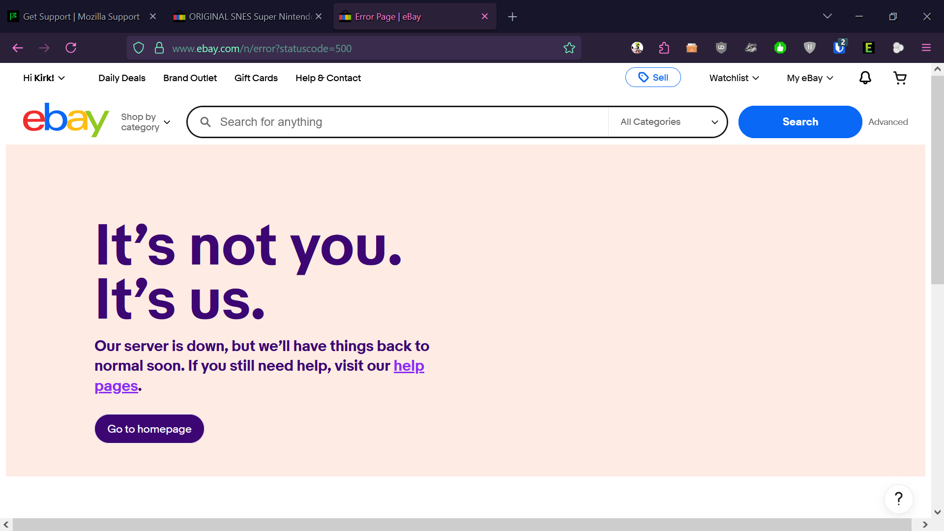 I have had zero problems logging in to eBay. That is, until, August 14, 2025. Now, I am getting an error stating that their server is down. I have cleaned my cache, cookies, turned off all of my Ad Blocking extensions, and I am still experiencing problems. Now, I have absolutely no problems logging into eBay via Microsoft Edge. As for security softer, all I am using is Windows Defender. What is going on? Please assist. I look forward to hearing from you and time is of the essence. Thank you.