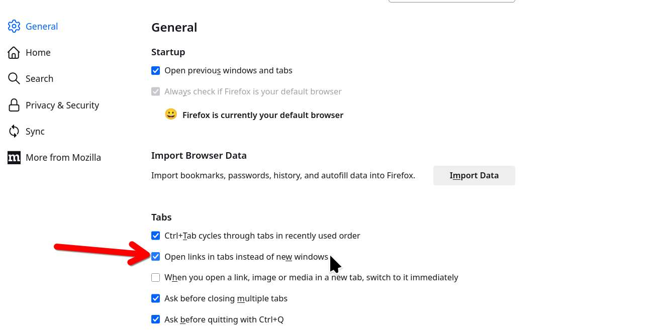 I lost the ability to browse using multiple tabs. I have to open multiple windows because the browser automatically goes directly to the site rather than a new tab. I've used firefox for YEARS. Must I change browsers to have this feature?