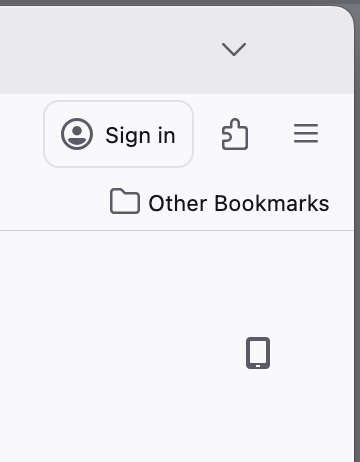 "mobile phone" icon in new window (prompt pop-up "install Firefox with QR-code")