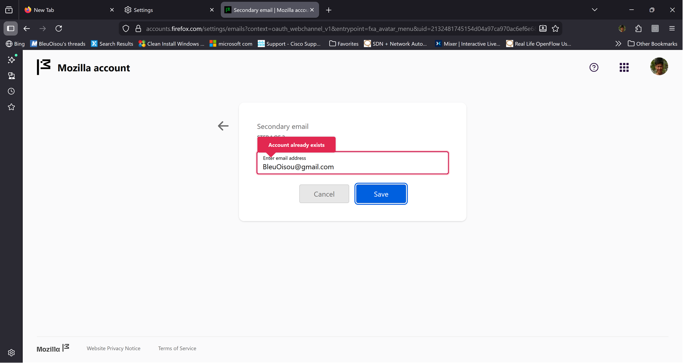 Browser shown none 2nd Email while adding it the 2nd email to profile -> "already existing"?