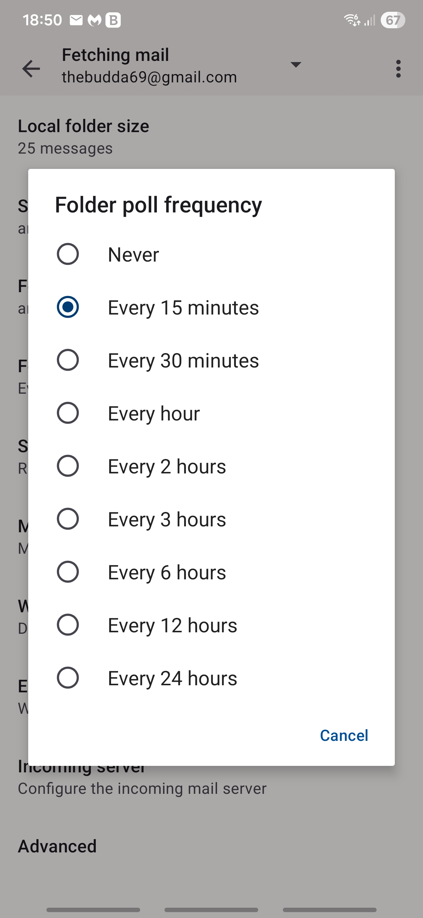 This option of push messages is very helpful, I appreciate your reply. But why can't users set their own timer so that we can fetch our emails like we can in Thunderbird desktop? Why the difference? This doesn't make sense in settings to me