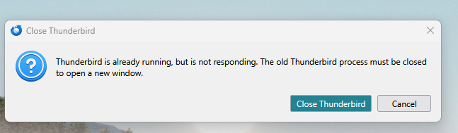 Thunderbird 140 and win 11 will not work. Gives error "Thunderbird is already running".