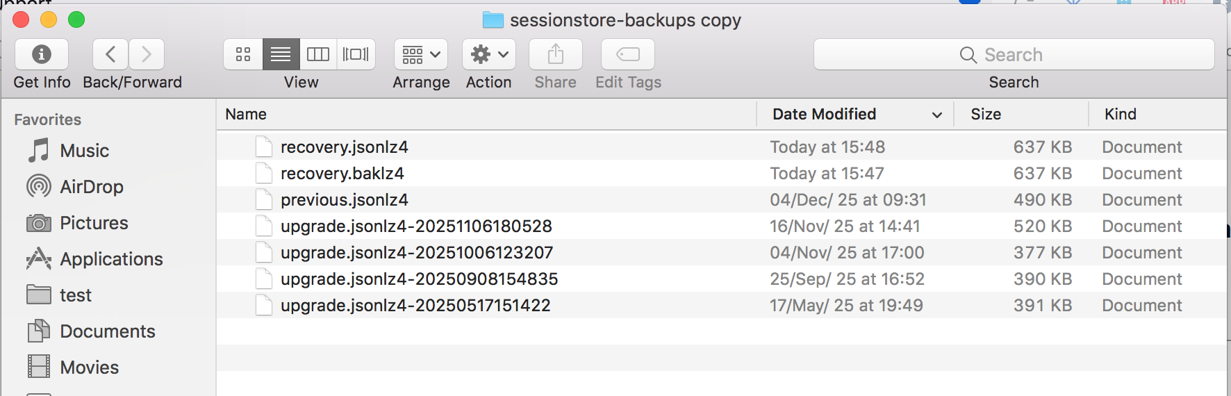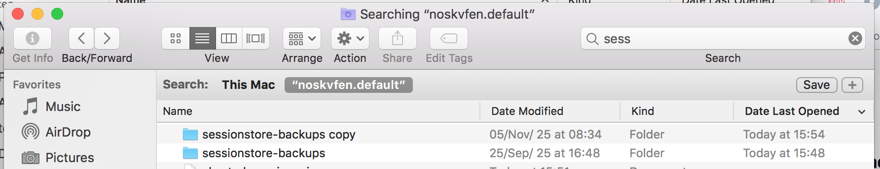 Firefox often fails to restore the session which is why I recommend you make a copy of the folder however often you want. I try to do it once a week. see screenshot