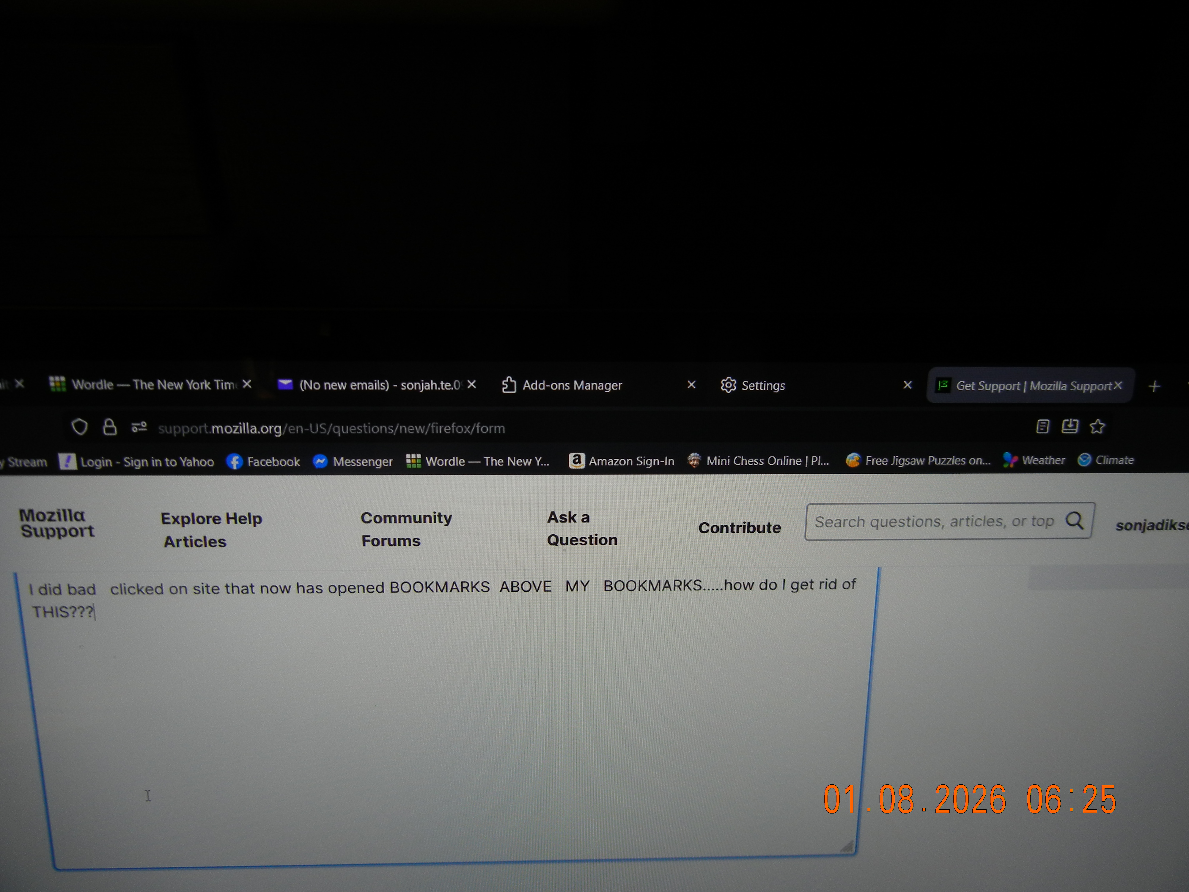 I did bad clicked on site that now has opened BOOKMARKS ABOVE MY BOOKMARKS.....how do I get rid of THIS???
