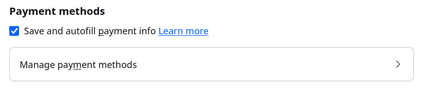 The browser will not store credit card information. If I enter correct information into a Web site, Firefox correctly queries whether I want to save this information. Clicking "Save" closes the dialog but when I look at "Manage payment methods" in Settings nothing is saved. Attempts to enter the information at this point fail as well. Note that the check box "Save and autofill payment info" is set.