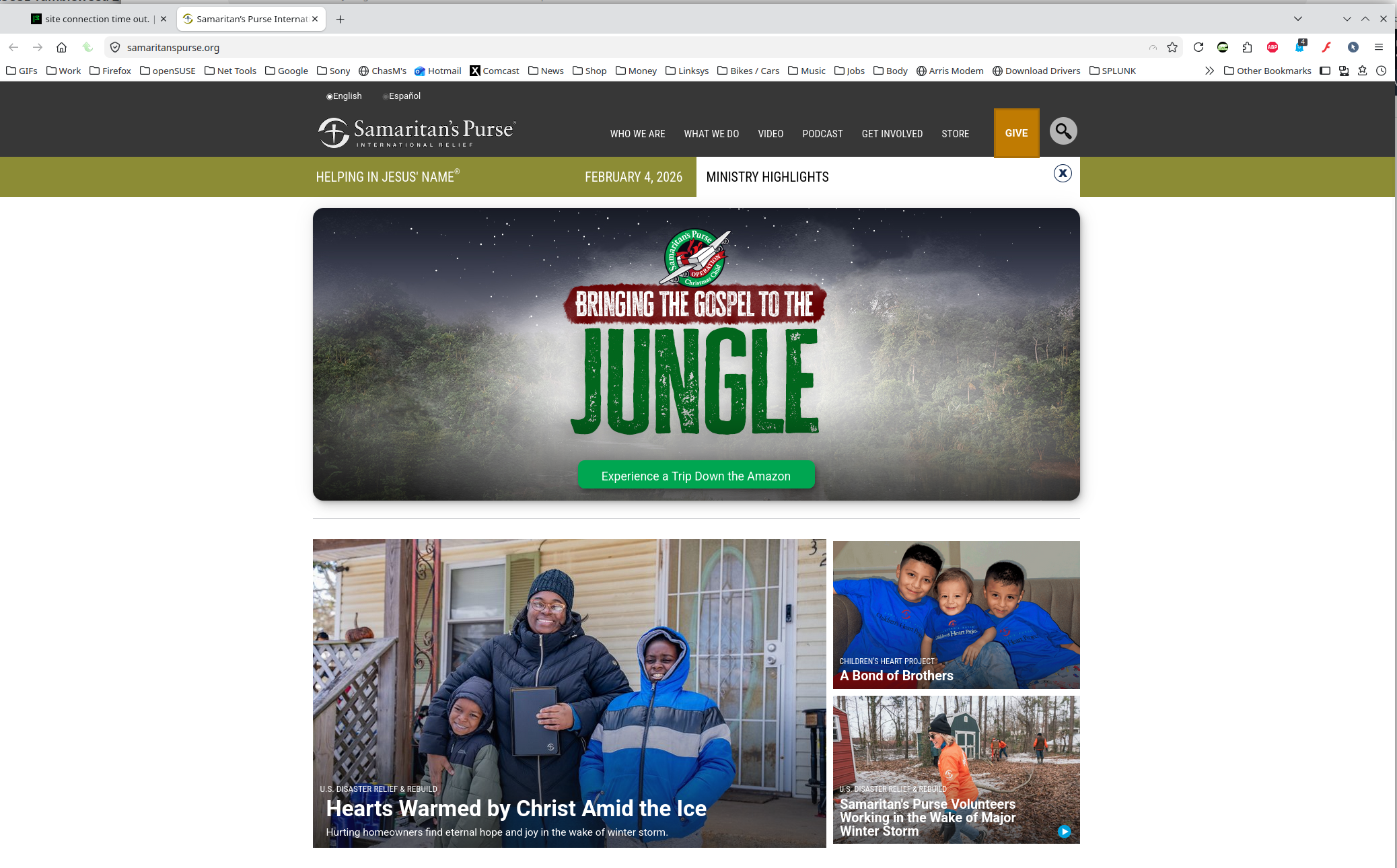 Hello, Until a couple of days ago we have been connecting regularly to the samaritanspurse.org website but now the connection times out. All other websites connect with no problem. What can we do to correct this situation. Thank you
