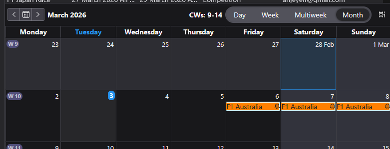 Can you please upload an image that shows the problem. Select the default 'Home' calendar Select 'Monthly' option Make sure we can see the section above the actual calendar, that says what selected and calendar itself shows part of feb and all of March. Basically upload image that shows same info as my image.