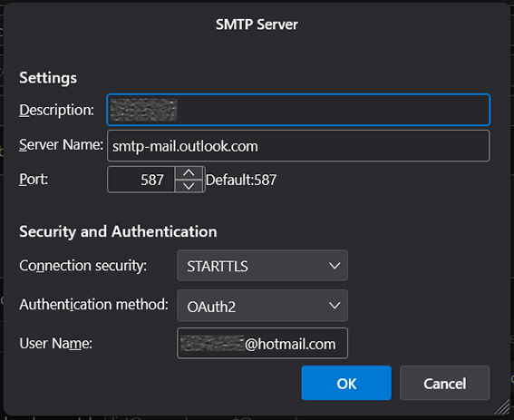 Well, here is another screenshot. The settings are definitely what they are suggested to be. During setup I get the authentication window to log into the Hotmail account. It closes without any error message. The result is that I am able to receive, but not to send any messages. I also tried the outlook.office365.com option. And by the way, my Hotmail account has no 2-factor auth activated and pop3 is on.