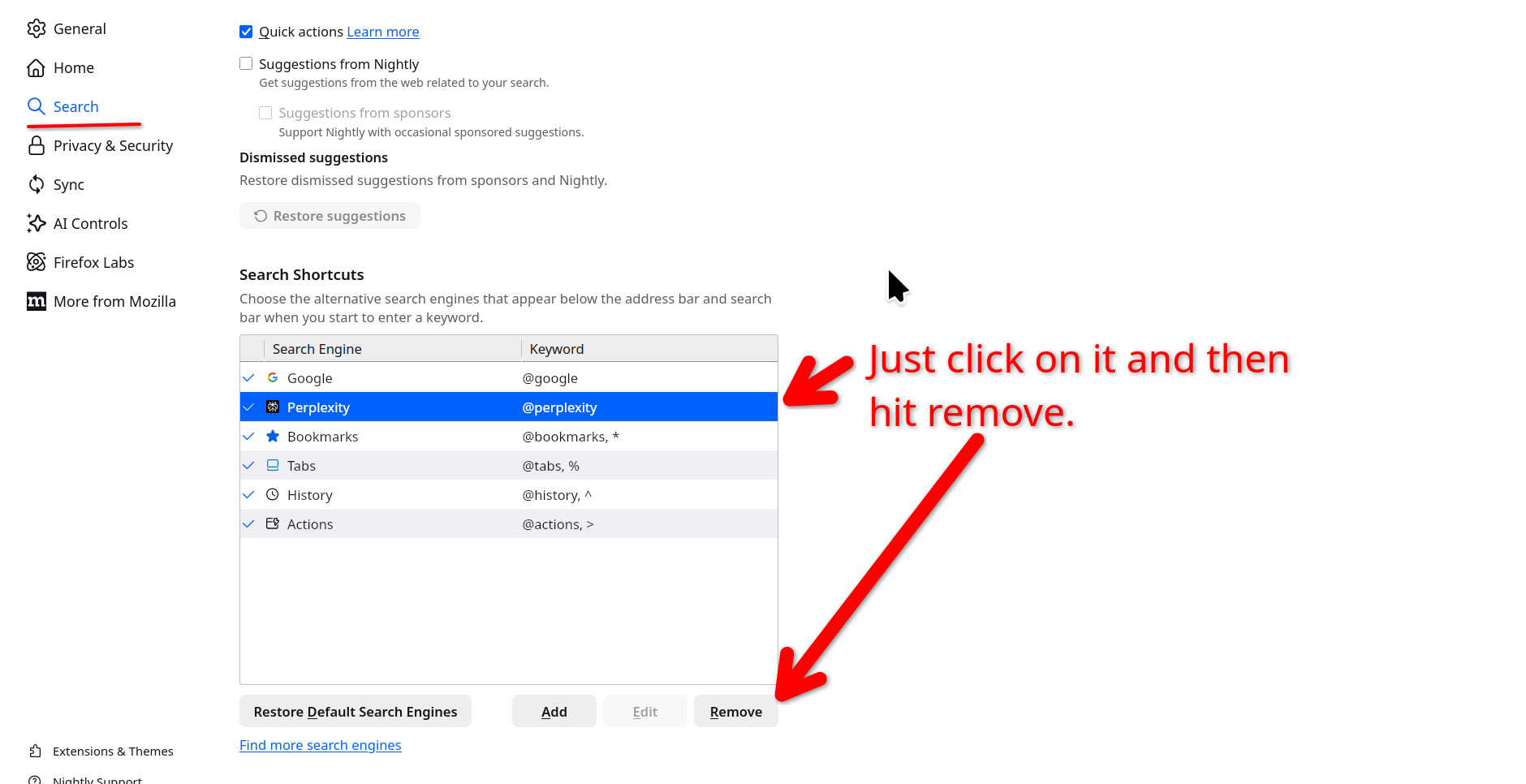 REMOVE AMAZON SEARCH FROM FIREFOX