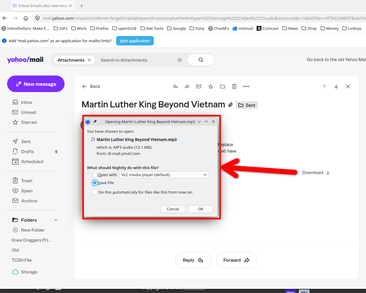 I cannot download work files from Yahoo Mail on Fire Fox; it suddenly stopped working.