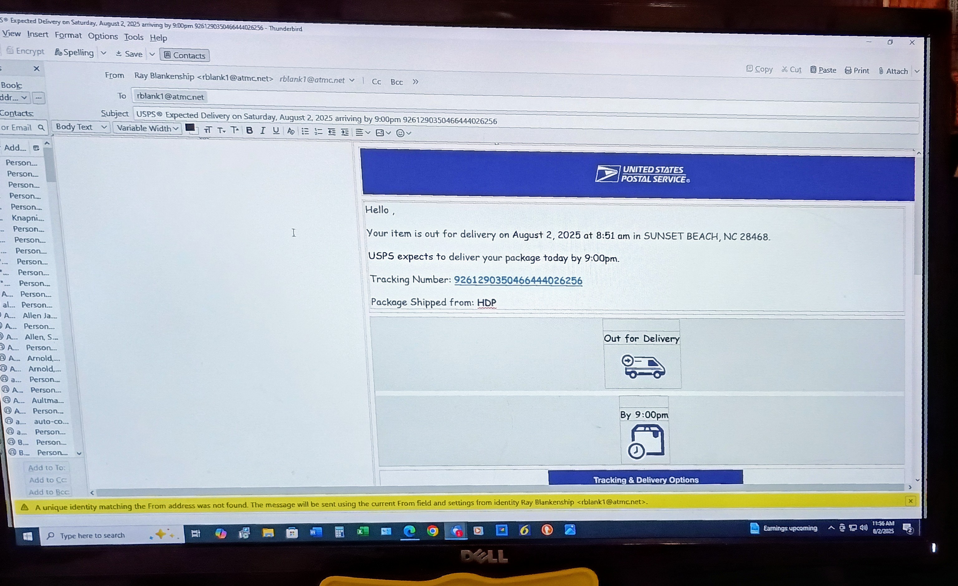 The last couple weeks any emails from a business only have red horizontal/vertical grid lines. If it says to view or track package it won't let me, do it. If I drag that email over to another folder it acts normal and if I drag it back to my in box it has the red lines. I've checked the emails in the server, they are normal. Also, there is yellow bar at the bottom of the attached email. It acts like a message I'm trying to send because the to is prefilled out with my email address. Weird Dell Inspiration 366B Ram 8GB 64-bit operating system Windows 10 V 22H2 Thunderbird 32-bit 128.9.0 release 3/18/2025