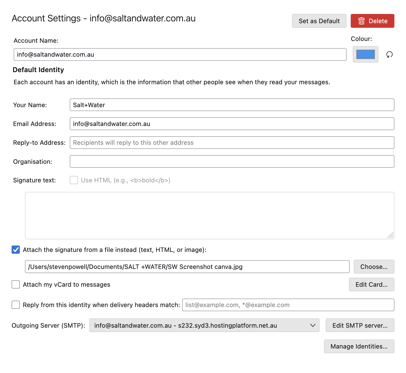 Hi there, As of yesterday my email signatures are no longer working. They appear when I send my emails but the receiver gets nothing.