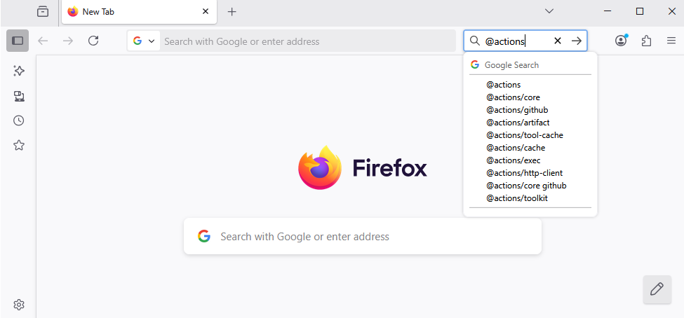 In Search bar toolbar, by way of illustration, @actions/github, does not trigger the Search Shortcut @actions. Do you agree.