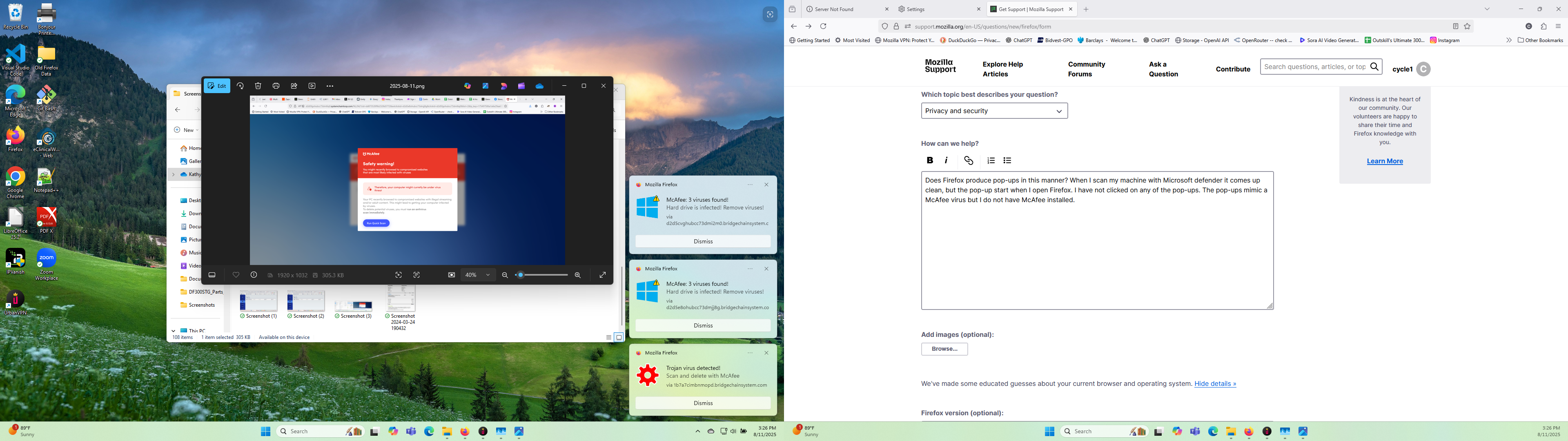 Does Firefox produce pop-ups in this manner? When I scan my machine with Microsoft defender it comes up clean, but the pop-up start when I open Firefox. I have not clicked on any of the pop-ups. The pop-ups mimic a McAfee virus but I do not have McAfee installed.