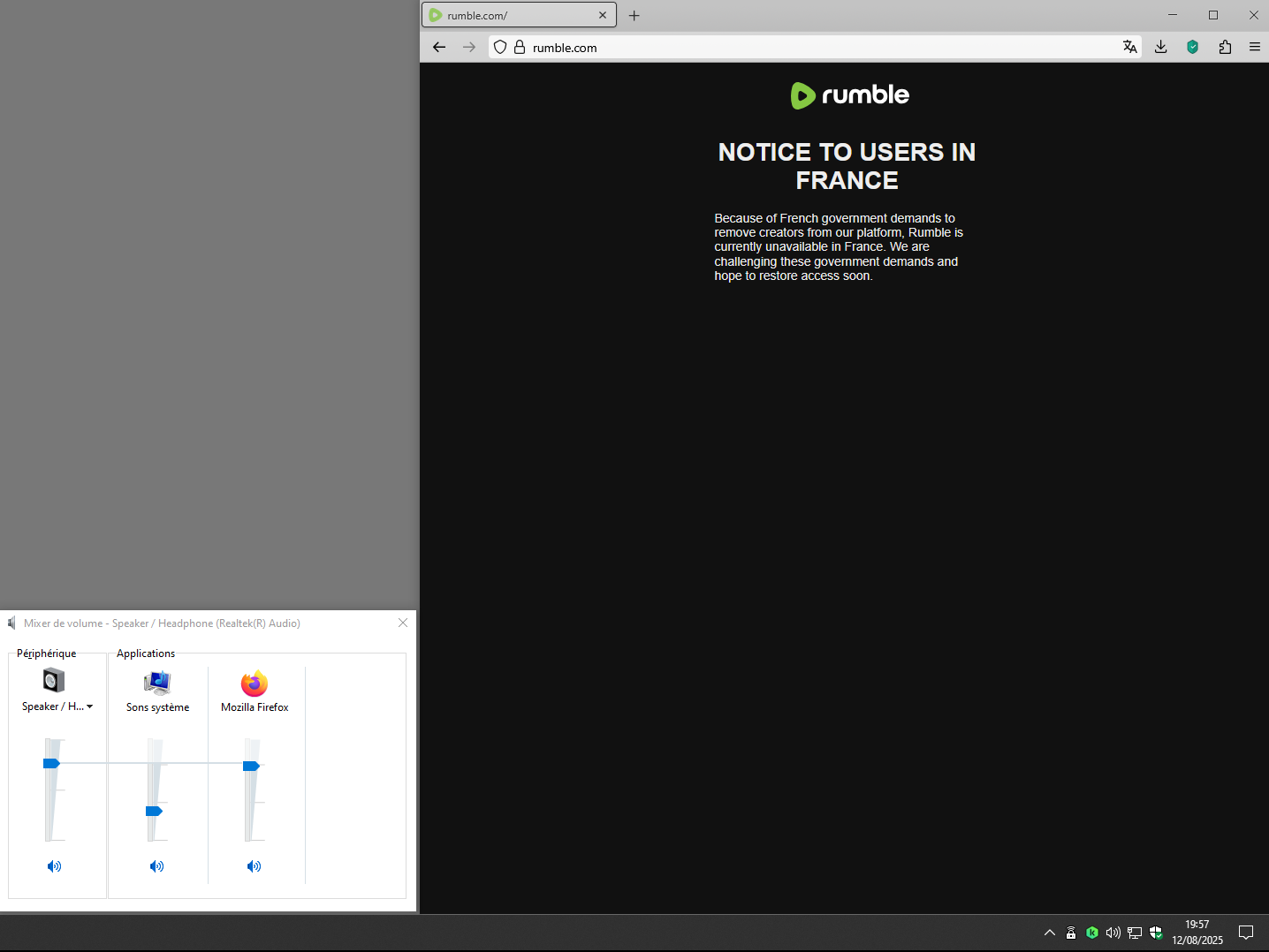 Sound on Rumble. It has always had an Enable Button with a bell, and clicking on that button has always enabled the sound at the videos I watch on Rumble. Recently, clicking on the button, adjusting the sound on Rumble settings in the video, and boosting the sound on my computer do not work. I'm hoping that can be fixed. Thanks in advance.