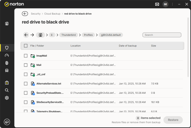 Also, attached are the pics from Norton. Pic 2 is only the backup of my C drive. The backup detailed in Pic3 includes the same C drive backup but also a backup of my external E drive, which is where I found the Thunderbird folders.