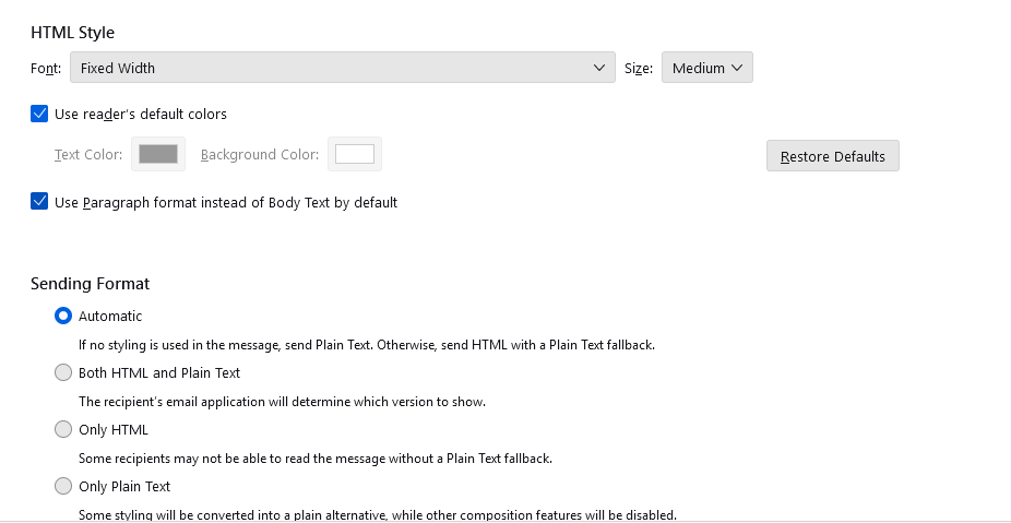 Why is it that I selected “Use Paragraph format instead of Body Text by default,” but when I write an email, it still does not automatically wrap to the next line?