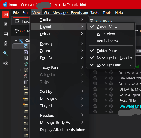 A new hard drive was installed last week. Then had to download and install Thunderbird again. But it looks different. The window is all the incoming list. It used to be divided by the top half showing the list and the bottom half showing whichever message I clicked on. Now I have to double click on the message and it opens a new tab. How do I make it go back to the way it used to display. That was a lot less clunky than opening a new tab. I'm also having trouble finding my calendar and address book. But that's a question for the Geek Squad who told me they backed up all my data.