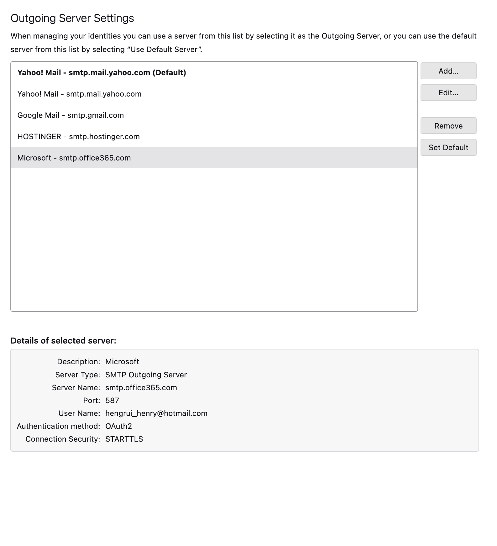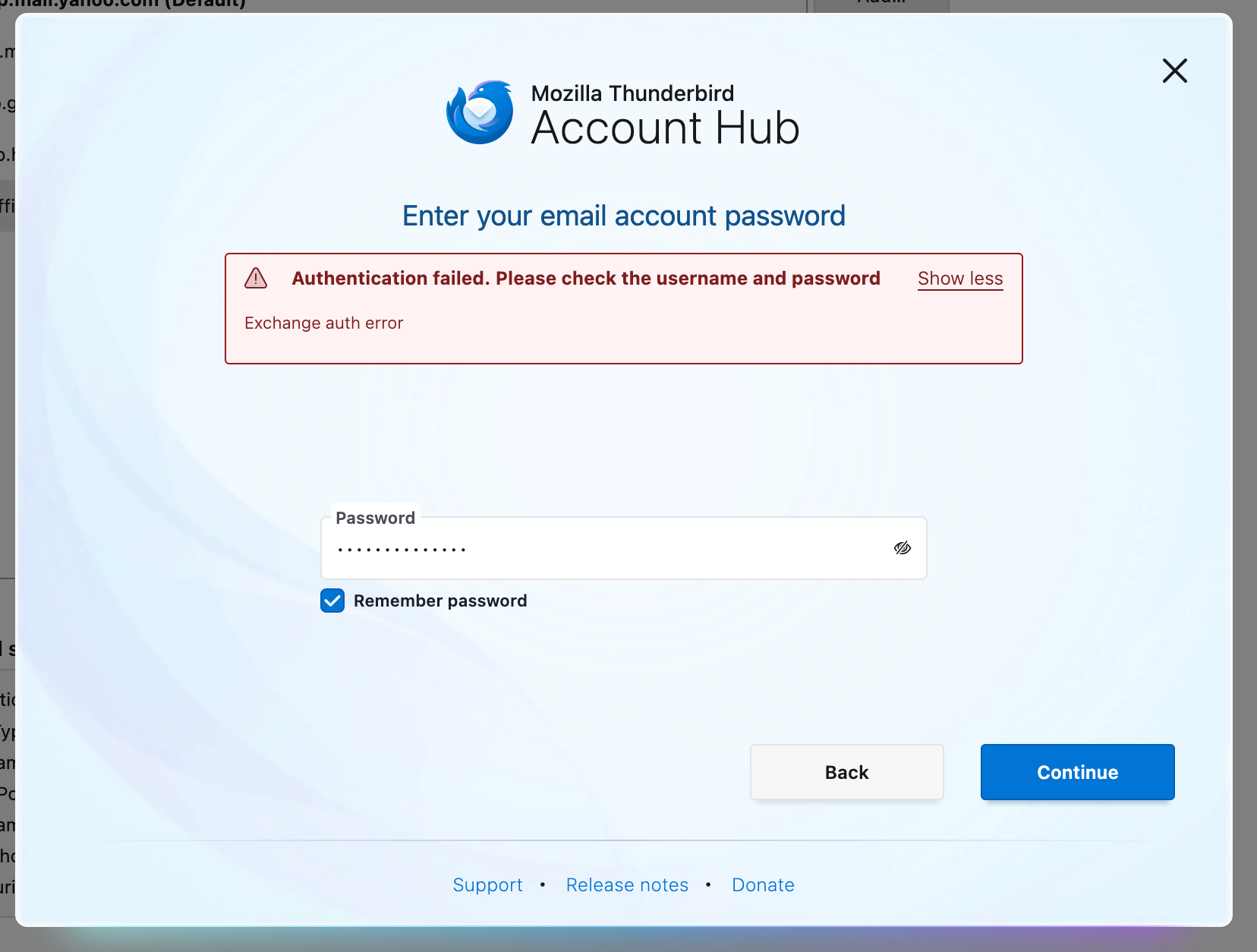 I am trying to setup Thunderbird for the first time on my mac (OS Sequoia 15.6.1). No problem with E-mail clients except the hotmail client. I am always stuck at this error message that authentication failed after I type in my password. I added manually an outgoing server for microsoft as described in some older post but I am unable to find to setup IMAP manually in the Thunderbird account settings. I believe I will have only the option to do so after I pass the authentication error. I also added some exception as recommended in some older forum post but it also didn't help.