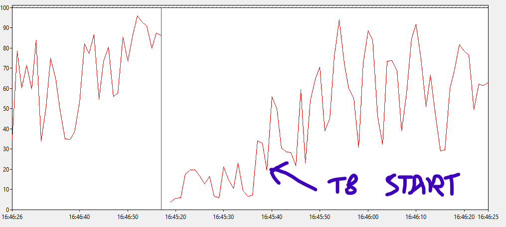 I am running TB. Using the Windows Performance Monitor, the usage jumps from 30% to 90% and then 100% once TB is open. I am running 1.128.14.0esr (64-bit). I have the before and after screenshots of the CPU, see attached. Is this known behaviour?