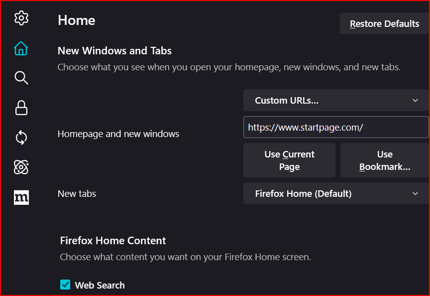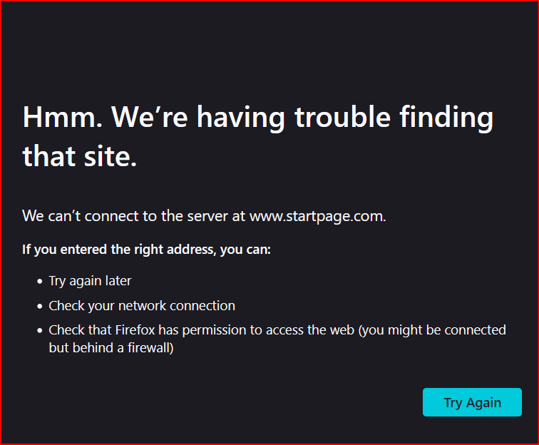 If settings, I have set my browser to be Startpage.com, which I have used for several years. Now, lately is seems as through Firefox is unable to locate that browser service. Is it being blocked for some reason? i have been using Firefox for a long time, and I ready appreciate their service. I know that Startpage.com a browser that is perhaps overly private, but is this wrong. I like the privacy from telemarketers.