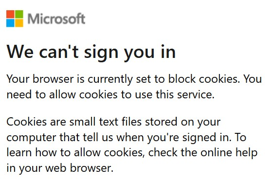 I was using Thunderbird email client software quite happily for several hours, when it suddenly gave the message for one of my accounts: "We can't sign you in Your browser is currently set to block cookies" (it isn't!!!!)