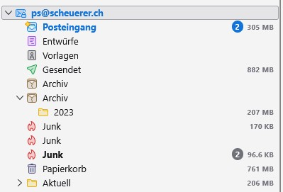 on my thunderbird i have 3 junk folders. how can i delete 2 (empty) of them?