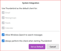 System Integration - Use Thunderbird as the default client for email - the box grey but has a tick in it. How do I get the box blue - with a tick?