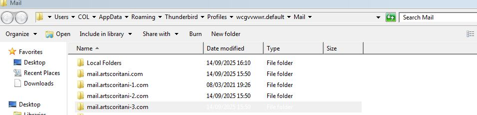 Ok, try this next: - click help>troubleshootinginformation - scroll down to 'profile folder' and click 'open folder' - exit thunderbird - you are in the active profile here in windows file explorer - back up one folder so that you are in the appdata\roaming\thunderbird\profiles folder - you should see more than one profile in that folder: your active one and prior one - assuming there is more than one, click to the one that is NOT your active one - then, to see if it contains your account, click either the imapmail or mail folder. - if you see your account, you have found the folder. report back and we'll go from there