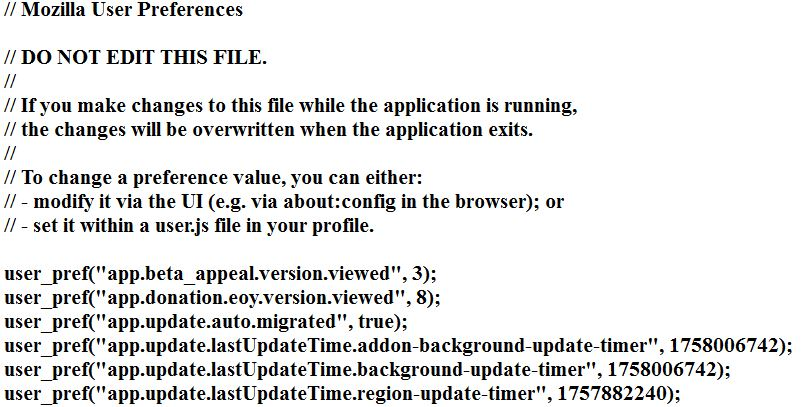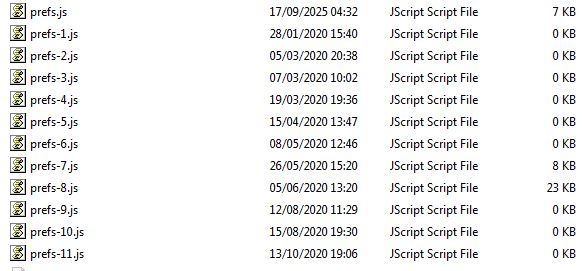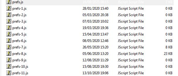 Did you mean the lowest number ? This is what I get when opening prefs 1.js, the latest date, with Notepad . There's nothing there for me to identify as my profile.