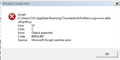 The issue from Sfhowes is when there is more than one prefs.js file. the one with highest number is the one to go with. And, open it by a rightclick and select notepad or other simple text editor (NOT a wordprocessor). You had clicked to open normally and Windows tried to access it as a script when it's only simple text. Post back status. His suggestion may look hard, but it's really simple text editing. Keep us posted. :)