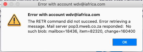 Receiving thunderbird error message shown on the attachment when trying to download mail.
