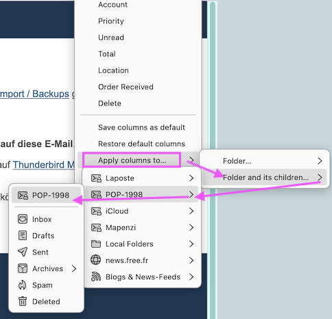 Hi Bill, just let's make a step back to the basics of saving customised columns since in my understanding this is not intuitive. Did you save your modifications each time via Apply columns to > Folder and its children > select account in which you want to apply your choice > click account (and not on one of its folders; see my image) Did you test the add-on "Default Columns" I mentioned in an earlier reply?