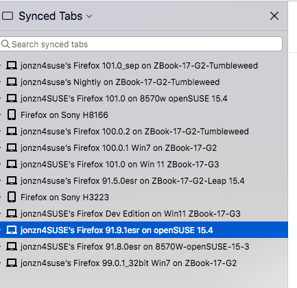 Just use the same account on both devices and watch the magic. My screenshot shows 2 Sony phones. https://support.mozilla.org/en-US/kb/how-do-i-set-sync-my-computer https://support.mozilla.org/en-US/kb/how-do-i-choose-what-information-sync-firefox