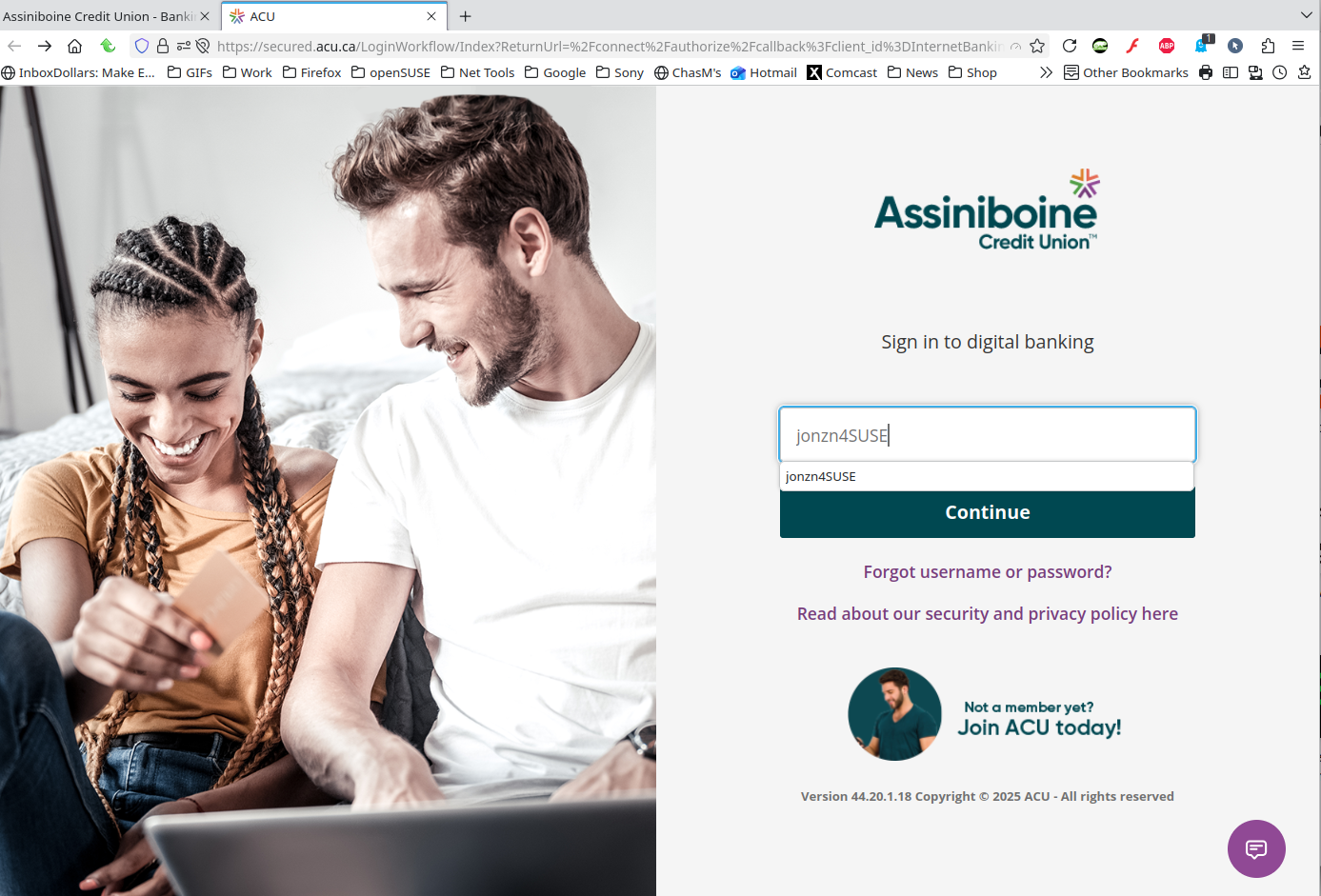 I cannot sign in to my banking website. I assume it's something to do with cookies or permissions. This is on my desktop, but I have no problem on my I-pad. I have the latest version of Firefox and I am using Windows 10.