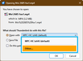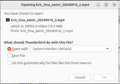 The 2nd picture doesn't show the option to Browse to a helper app, maybe because the attachment isn't properly encoded. I sent myself an mp4 attachment with TB, and the open dialog sequence is shown in the attached pictures (TB 128/W11). As you can see in the 3rd picture, there is a Browse button to choose any app.