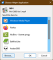 I Click on the .mp4 file, select "Open With", select "Other" which opens "Select Application" / "Choose Helper Application" / "No applications found for Mpeg-4 video files" / "View All Applications". When I click on "View All Applications", I am given 2 choices: "Thunderbird Mail" and "URL handler script", neither of which is helpful to me. Where do I go from her? Can this process be made more User Friendly?