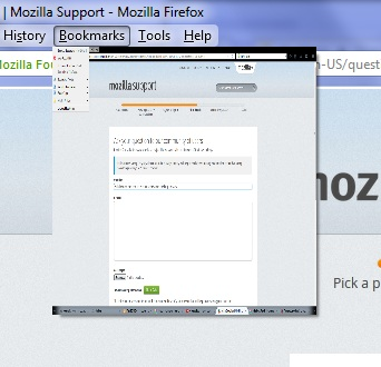 When I click on File/Edit/etc, or the search/menu bar, or even right click I'm met with a micro version of my current screen view. How do I fix this? I am on a fresh install of Windows 7 and a fresh download of Firefox. I tried importing my old data, which worked fine, but this problem persists there as well. This does not happen in other programs and I have no add ons installed.