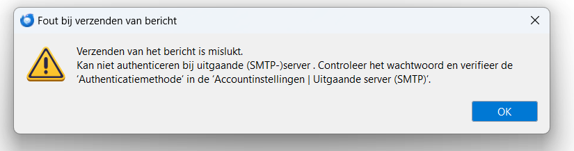 SInds kort heb ik veel problemen om een email te versturen. Soms lukt het vanaf de eerste keer, soms moet ik tot 5 pogingen proberen. Bijgevoegde screenshot is de foutmelding dat ik krijg.